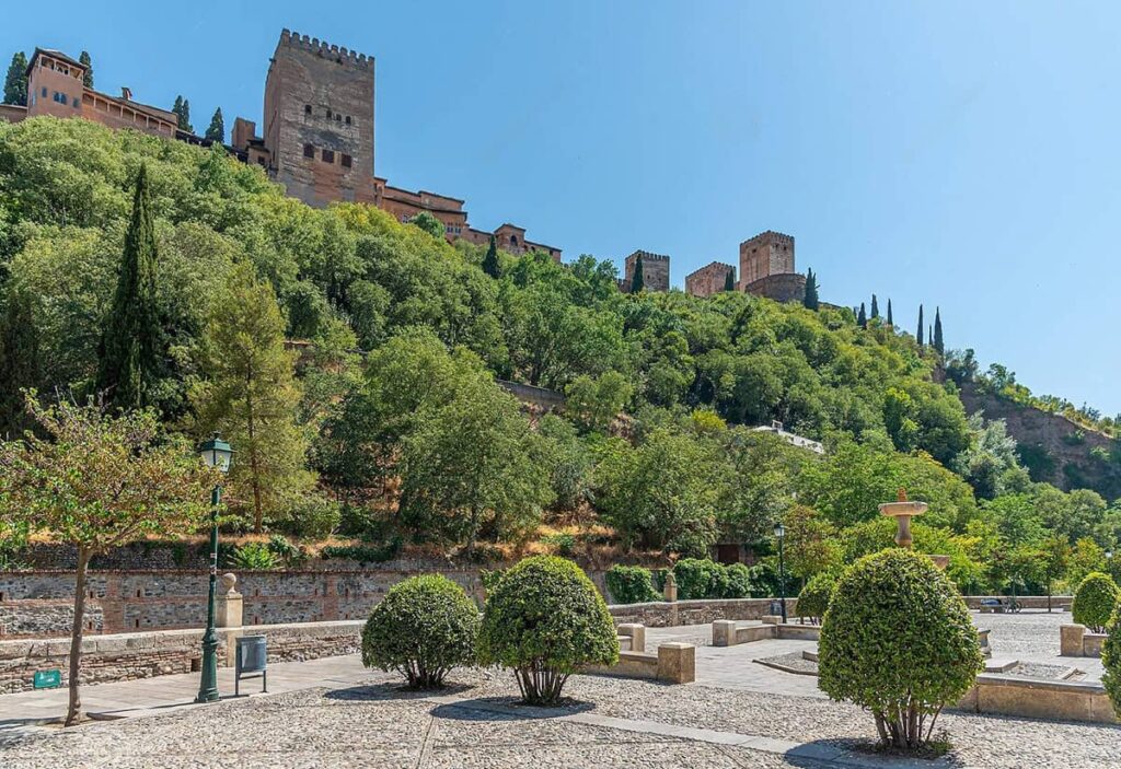If it is very crowded you can go to the Placeta de los Carvajales, which offers excellent views of the Alhambra and the Generalife, or enter the courtyard of the Great Mosque of Granada, which has a quieter view of the Alhambra.
